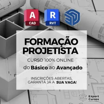 Por fim, em primeiro lugar, apresento a você os cursos de AutoCAD, Revit e SketchUp oferecidos pela Expert T Cursos.
